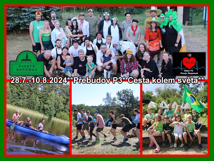 Druhou polovinu prázdnin zahájili táborníci na Přebudově sjezdem OSN, kdy každý oddíl představoval jednu ze zemí, které jsme při našem putování objevovali. Z evropských zemí jsme navštívili Irsko, kde jsme hledali poklad sv. Patrika, ve Francii jsme se zúčastili olympijských her a ve Švédsku se táborníci utkali v pěvecké Eurovizi. V Severní a Jižní Americe jsme v Mexiku oslavili svátek mrtvých, v Brazílii bojovali proti kartelům a v USA navštívili casino.V Austrálii u protinožců bylo i u nás všechno naruby – nejstarší děti se totiž ujaly vlády nad táborem. Z asijských zemí nemohlo chybět Japonsko, kde jsme si vyzkoušeli jeho bláznivé televizní hry a na vlastní kůži jsme zažili boj s byrokracií a útěk z KLDR. Navštívili jsme i dvě africké země – Egypt a Madagaskar. Našemu cestování byl přizpůsoben i táborový jídelníček. Děti tak měly možnost ochutnat zajímavá jídla z celého světa. Vyzkoušely si třeba přípravu japonského sushi, ochutnaly žabí stehýnka, klokaní řízky i hadí ocásky, nechybělo burrito, ramen, masikita, japchae nebo poctivý hamburger či švédské masové kuličky. Po našem závěrečném návratu do Česka pak nemohla chybět svíčková s brusinkami. Celou dobu nás provázel Český Honza, který se, stejně jako naši táborníci, dozvídal o navštívených zemích mnoho zajímavostí. V polovině tábora nás navštívili i naši kamarádi, kteří mají vlastní zkušenosti se životem v různých koutech světa, aby dětem poutavě povyprávěli o slastech a strastech života v zahraničí. Věříme, že se všichni z tábora vrátili plni skvělých zážitků, se spoustou nových kamarádů, a že se spolu uvidíme opět příští rok. Speciální poděkování za sponzorské dary patří Vodárně Plzeň a.s. a Jájovi za sehnání upomínkových předmětů prostřednictvím ambasád. Na fotografie z letošního tábora se můžete podívat na našich FB stránkách https://www.facebook.com/prebudov, kde rovněž můžete během ledna vyhlížet přihlášku na další rok. Za Pionýr Nepomuk z.s., táborový klub P3, M. Brejcha