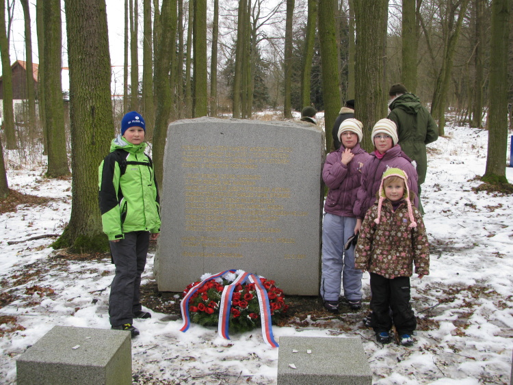 Únorová výprava v sobotu 18.2.2012 nás zavedla k památníku padlých amerických letců na Dubči. V sobotu se uskutečnil pietní akt k 68.výročí sestřelení amerického bombardéru Liberator B24J . Na nepomuckém náměstí se nás v devět hodin sešlo málo. Přišel jenom vchod 576, ale stejně jsme vyrazili. Povídali jsme si o památkách, které jsme potkali cestou kaple sv.Vojtěcha, Červený most, Klášter. Nejprudší stoupání na Dubeč jsme rychle zvládli. Postavili jsme tady také sněhuláčka. Pod statkem na Dubči nás předjela kolona amerických veteránů. V prvním džípu byl i náš starosta města p.Václav Kovář. Trochu jsme přichvátli a ještě jsme stihli položení věnců u památníků. Po odjezdu aut jsme si dali svačinku a čaj. Cesta domů byla už rychlejší. Šlo se z kopce, rukavice byly promočené a také nám už čvachtalo v botách. Rozkliknutím nadpisu článku se podíváte na obrázky z naší výpravy.