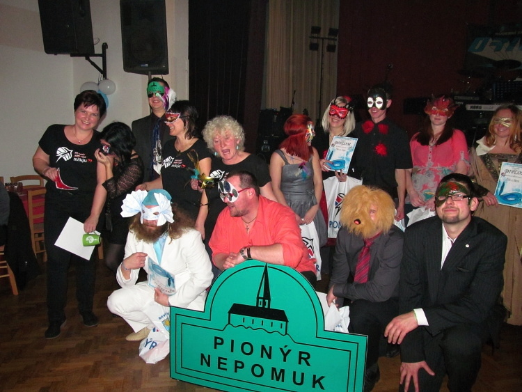 V noci z 27. na 28. 11. se v Nepomuku děly věci! K Sokolovně se s příchodem noci začaly ze všech koutů Nepomuka a okolí scházet prazvláštní postavy. Dámy oblečené v šatech, ozdobené zářícími šperky, pánové v oblecích s naleštěnými tanečními botami. A co je nejzvláštnější, všichni měli na obličeji pestrobarevné masky! Náhoda? Kdepak. To se jen v Sokolovně konal Ples se škraboškou, který pořádala místní pionýrská skupina.  Úderem deváté hodiny večerní se velkým sálem rozezněla hudba a všichni přítomní byli přivítáni vedoucím PS Nepomuk, Vaškem Horníkem. A pak už nezbývalo nic jiného, než to pořádně roztočit! Jednotlivé masky se nahrnuly na parket, kde řádili až do pozdních ranních hodin.  Někdo se raději ploužil, jiný to roztáčel v rytmu polky či valčíku a další zkrátka tančili, podle vlastního stylu. Celý večer hrála k tanci a poslechu kapela Orion, která po každé písničce sklidila zasloužený potlesk. Někdy kolem jedenácté večerní, došlo také na vyhlášení nejlepších a nejoriginálnějších masek, přičemž každý, kdo se umístil, dostal drobný dárek. Protančený večer navíc doplnilo i několik zábavných soutěží, jejichž organizací byl pověřen Míra Dvořák, který se tohoto úkolu zhostil bravurně. Jednalo se například o tanec s jablkem, či balónkem nebo hádání barevných víček, která se postupně tahala z klobouku. Myslím, že se ples skvěle podařil, soudě podle spokojených ohlasů a počtu účastníků 139. Tak snad to takhle vyjde i příští rok.*KN