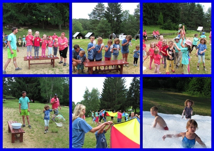 V úterý jsme si hráli na vodníky pod vedením Míry Dvořáka. Zasoutěžili jsme si kolem rybníka, vyrobili vodníčka a odpoledne jsme měli bublinkovou párty a soutěže na hřišti. Děti vyráběly obří bubliny.