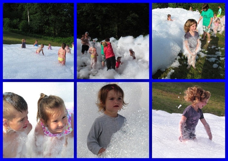 K večeru přijeli hasiči, aby nám ukázali hasičský zásah. Vyrobili nám krásnou pěnu, která místy přesahovala 2metry a šly v ní dělat i tunely. Nakonec nám udělali rozprašovačem duhu. Bylo to bezva a Nepomuckým dobrovolným hasičům moc děkujeme! Večer jsme si ještě zahráli na louce nad táborem vodnické hry a hlavně jsme prohnali letní sáně. Dětem se sáňkování na louce moc líbilo