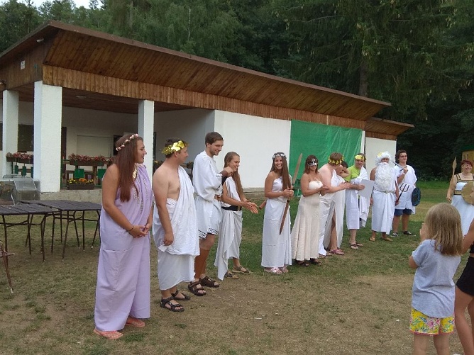 I letošní dětský tábor jsme opět absolvovali na základně pana Krause, v malebném údolí řeky Mže, u obce Svojšín a to v termínu od 4.8. do 18.8.2018. Téma celotáborové hry: Cesta na Olymp neb bohové musí být šílení.“