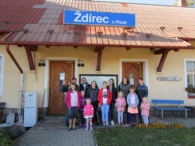 V neděli 14.10.2018 jsme se sešli na nádraží ve Dvorci a vyrazili do Ždírce, tam už na nás čekali kamarádi z Blovic a Plzně. Nejprve jsme šli na dětské hřiště. Pohráli jsme si. Pohoupali a zatočili na kolotoči. Vyzkoušeli jsme venkovní posilovací stroje, posvačili a vydali jsme se procházkou do Ždírecké ZOO. Tam jsme si prohléhli krásná vyřezávaná i vykovaná zvířata. Nejvíce se nám líbil jelen, malování i hry. Zahráli jsme si hry o odměny a pokračovali v putování až do ždírecké hospody. Tam jsme se občerstvili a šli na nádraží. Čekání na vlak jsme si krátili hrami a zpíváním. Děti si zasoutěžily v kolektivu. Dospěláci si popovídali i pohráli s dětmi. Cesta vlakem byla také zážitkem. Perfektní bylo i počasí. Akce se moc povedla a splnila svůj účel.*Martin Běle
