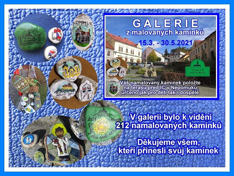 Výstavka Malovaných kamínků, kterou připravil Pionýr Nepomuk na terasách v Nepomuku na náměstí byla ke dni 30.5.2021 ukončena. Celkem bylo k vidění 212 malovaných kamínků od dětí i dospěláků. Podařilo se nám nafotit většinu kamínků i když ty nejhezčí zřejmě putovaly dál. Podívejte se na jejich fotografie.