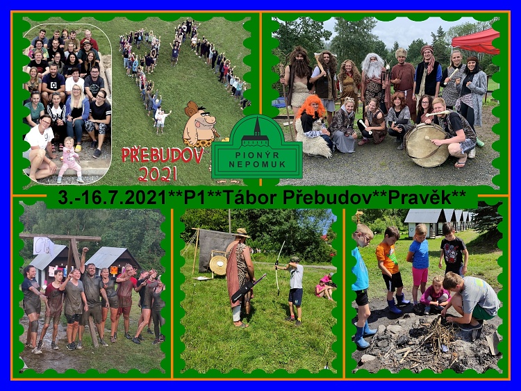 Letos jsme se s prvním během přesunuli od 3.-16.7.2021 na 14 dní do doby pravěké. Jak už je zvykem, náš běh osídlil Přebudovskou osadu na první dva červencové týdny. Během tábora jsme se všichni, děti i dospělí, dozvěděli spoustu zajímavostí z Pravěku, naučili se bojový pokřik a tanec, fyzicky se zocelili a připravili se na lov mamuta, který měl být vyvrcholením celého tábora. První etapou letošní celotáborové hry muselo být, vzhledem k situaci, získání negativního výsledku testu na COVID-19. S touto etapou nám pomohla biotechnologická společnost SCIMED Biotechnologies s.r.o., které tímto velice děkujeme za spolupráci a testovací dobrodružství. První den tábora k nám vyslali mobilní testovací tým, který nám všem, tedy týmu stařešinových rádců (vedoucím) i novým posilám pravěkého kmene (dětem), ochotně provedl jak antigenní, tak PCR testy, abychom si zajistili, že se tato etapa již nebude muset opakovat. Všichni jsme první etapu zvládli s negativním výsledkem, a tak jsme se mohli vesele pustit do dalších výzev, ty už byly, alespoň většinou, příjemnější.  Díky báječné souhře zkušených i nezkušených pravěkých lovců, jsme prožili 14 nabitých dní, které jsme si, i přes nepřízeň počasí nesoucí s sebou vydatné deště, bouřky i kroupy, užili. Dny nabité dobrou náladou a pestrým programem tak rychle ubíhaly a nelítostně se blížil konec tábora. Během rychle plynoucích dní jsme si stihli užít maškarní, soutěže, hry, siláckou olympiádu, Miss Přebudov i velkolepý souboj vedoucích versus dětí. Na konci druhého týdne přišel onen den D, den kdy se jednotlivé pravěké kmeny, do kterých byli malí i velcí lovci rozděleni hned na začátku táborového dobrodružství, měly vydat na lov mamuta. A tak se také stalo! Odhodlání ani nadšení nechybělo, a tak se povedlo! Mamut byl sejmut.  Díky tomu jsme mohli uspořádat velkolepou závěrečnou oslavu. A tak se jedlo a pilo, slavilo a tancovalo a nikdo neměl čas smutnit, že se nám společný čas v Přebudovské osadě krátí. V sobotu ráno to přišlo, společně jsme se naposledy nasnídali, uklidili tábor, pobalili věci a vyhlíželi davy rodičů. Přijely. A tak muselo nastat loučení, a byť jsme se všichni již těšili domů, na rodinu, na vlastní pohodlnou postel a sprchu, víme moc dobře, že všem bylo ve skrytu duše smutno, že tábor již končí. A tak už se všichni již teď těšíme na ten příští. Věříme, že se na nás děti budou těšit minimálně z poloviny tak, jako se už teď těšíme my na ně. Tak kdo ví, v jakém období, říši nebo časoprostoru strávíme 14 dní příští rok. Ať už to bude cokoliv, určitě to bude stát za to. Tak ahoj za rok!