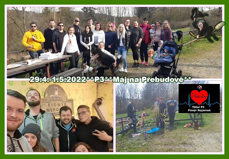 Sraz P3 29.4.-1.5.2022 -Po dlouhé době se počasí na přelomu apríla a máje opravdu vydařilo, proto jsme se sešli v hojném počtu. Připravovali jsme program na tabor, zrekapitulovali, kdo letos jede, zahráli teambuildingove hry, připravovali drevo a nakonec doslo i na paleni carodejnice.*MR