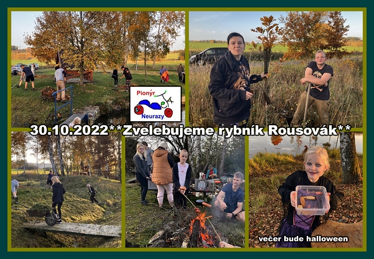 Dobrovolníci nevymřeli a rybník Rousovák se stává významným místem setkávání. To ukázala akce ZVELEBME SVÉ OKOLÍ, kdy různorodé skupiny lidí, které se ani neznali pod vedením oddílu Babety zapracovaly na úpravě velkého prostoru okolí rybníka Rousovák. Udělala nám radost velká přítomnost dětí. Každá skupina měla různý úkol. Někdo sekal, další skupina hrabala a odvážela biomasu, další skupina sázela stromky (5 osik, 3 duby, 3 javory a 3 vrby). Další skupina pracovala na ohništi - úklid, příprava dříví a rozdělání a udržení ohně. Další připravovali stanoviště - střelba ze vzduchovek na biatlonové terče (odměna pro děti i některé dospělé) a poslední skupina vyráběla lavičky a stavěla "pec" ze šamotek z akumulačních kamen, které se vyřadily při výměně otopného systému v MŠ a OÚ Neurazy. Při závěrečném posezení u ohně spojené s občerstvením se vše zhodnotilo, poděkovalo pomocníkům, protože se udělal obrovský kus práce a bývalá starostka Neuraz a zároveň učitelka biologie se zaměřením na enviromnetální výchovu, vysvětlila všem přítomným důležitost zadržování vody v krajině a co jsme pro to udělali - sázení a starání se o rybník Rousovák a co se ještě může udělat. Dalším tématem byly potravní vztahy v rybníku a okolí. Dále povídání o významu několikaleté hromady větví, která se stále navršuje - broukoviště a nutnosti zachování přirozených křovisek v okolí rybníka - úkryty zvěře. Dále důležitost recyklace - šamotky na výrobu pece a opravená cesta k rybníku z recyklátu - šetření neobnovitelných zdrojů a další nápady a zkušenosti dětí nejen s tématem třídění. Opravdu vydařená akce s velkým přínosem nejen společenským.**Maruška S.