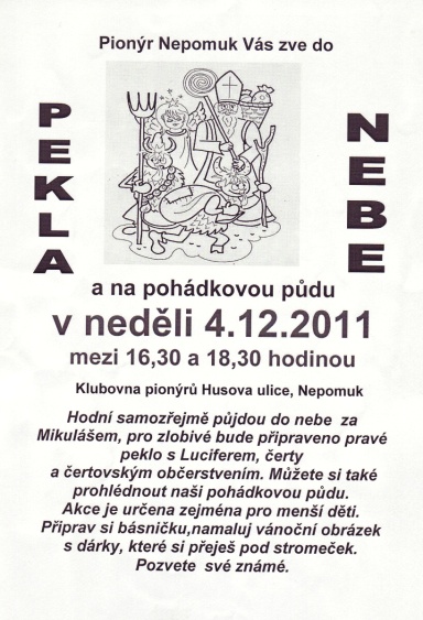 Naše dětská organizace Pionýr připravuje a organizuje volný čas dětem a dospělákům v malém městečku jižně od Plzně.