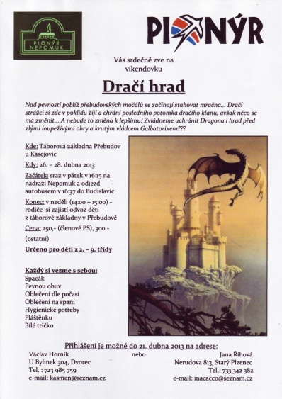 Naše dětská organizace Pionýr připravuje a organizuje volný čas dětem a dospělákům v malém městečku jižně od Plzně.