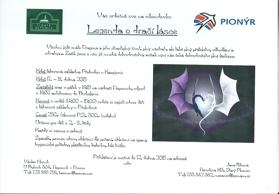 Pionýrská skupina Nepomuk připravila pro léto 2025 šest táborových běhů, tábor rodičů s dětmi a tři příměstské tábory.. O přihlášky na tábory si můžete napsat nebo zavolat na kontakty uvedené v letáčku. img