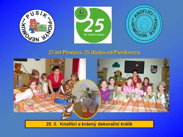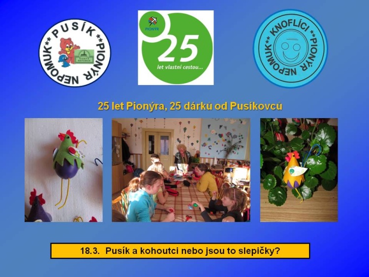 Naše dětská organizace Pionýr připravuje a organizuje volný čas dětem a dospělákům v malém městečku jižně od Plzně.