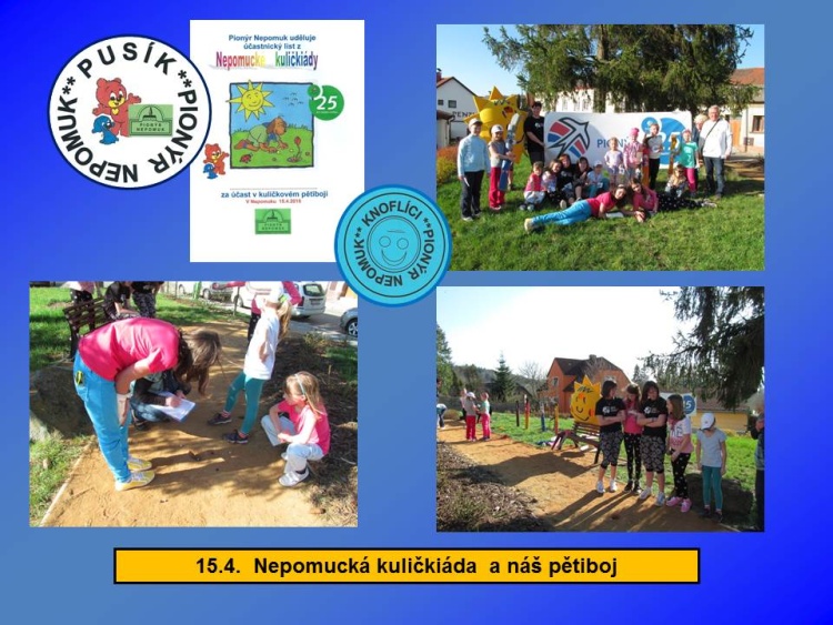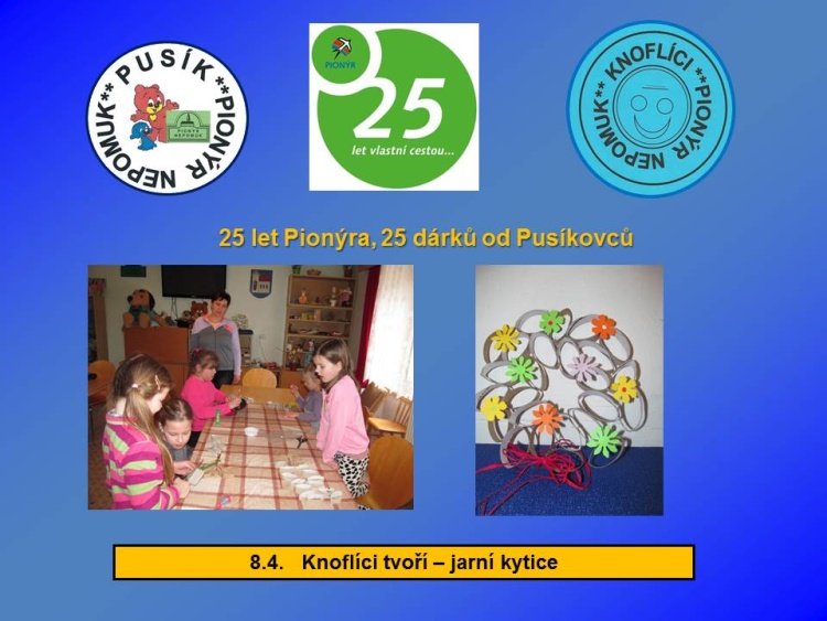 Naše dětská organizace Pionýr připravuje a organizuje volný čas dětem a dospělákům v malém městečku jižně od Plzně.