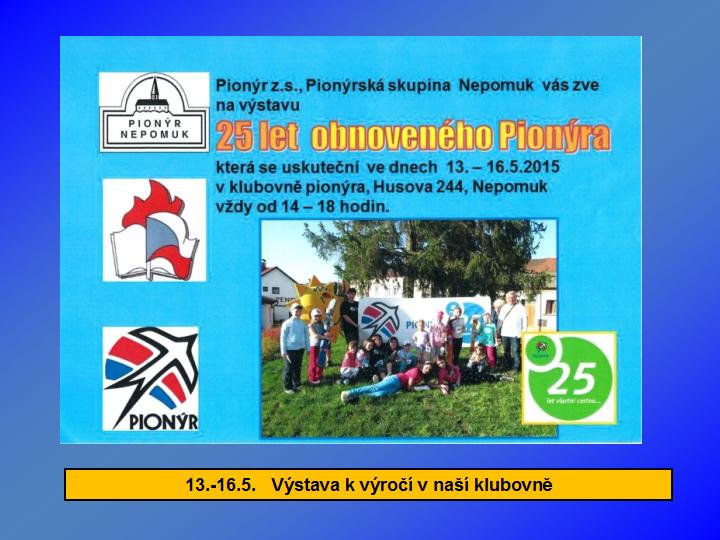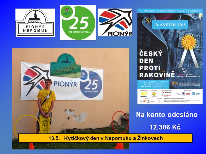 Naše dětská organizace Pionýr připravuje a organizuje volný čas dětem a dospělákům v malém městečku jižně od Plzně.