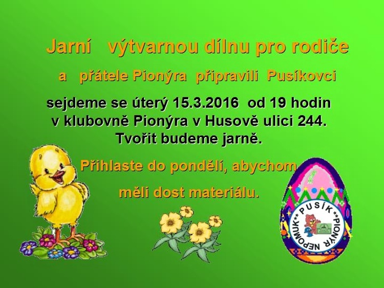 Naše dětská organizace Pionýr připravuje a organizuje volný čas dětem a dospělákům v malém městečku jižně od Plzně.