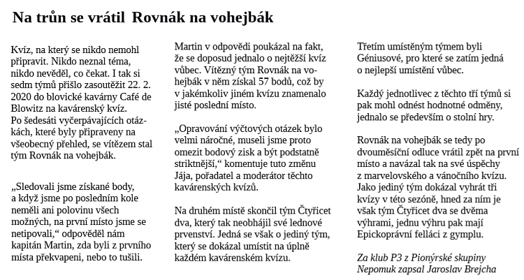 Naše dětská organizace Pionýr připravuje a organizuje volný čas dětem a dospělákům v malém městečku jižně od Plzně.