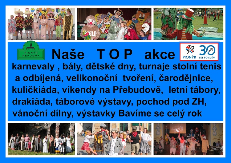 Naše dětská organizace Pionýr připravuje a organizuje volný čas dětem a dospělákům v malém městečku jižně od Plzně.